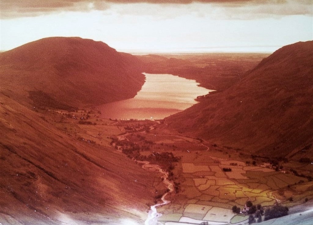 Aged photo of the wonderful view down Wasdale from Great Gable in 1981