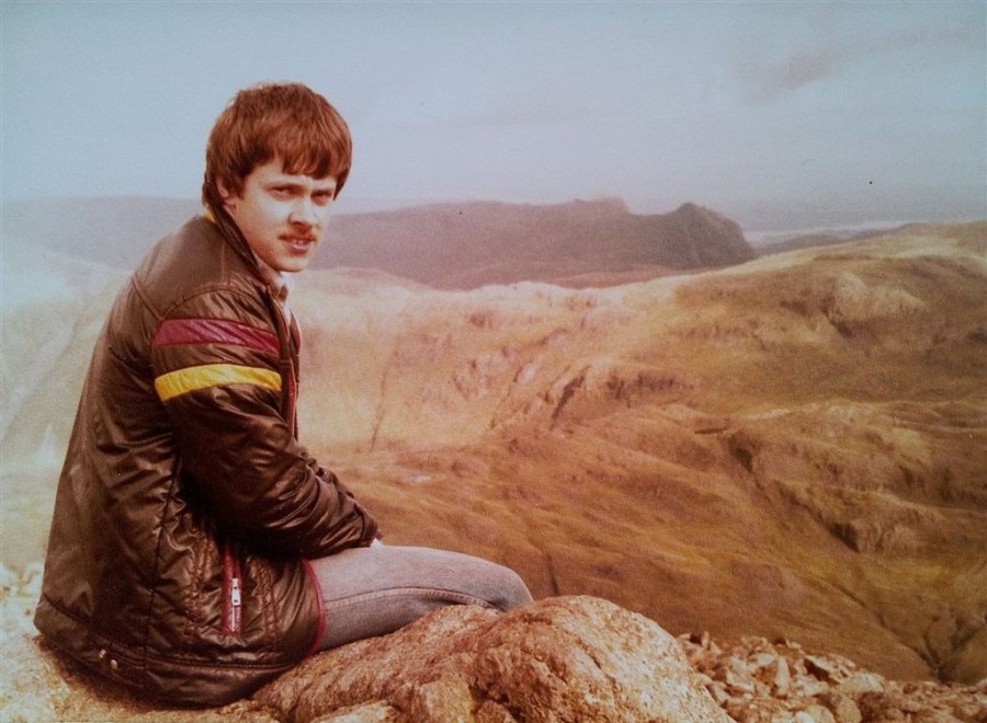 Me aged 20 on my first mountain Great Gable, dodgy gear, hair & moustache!!
