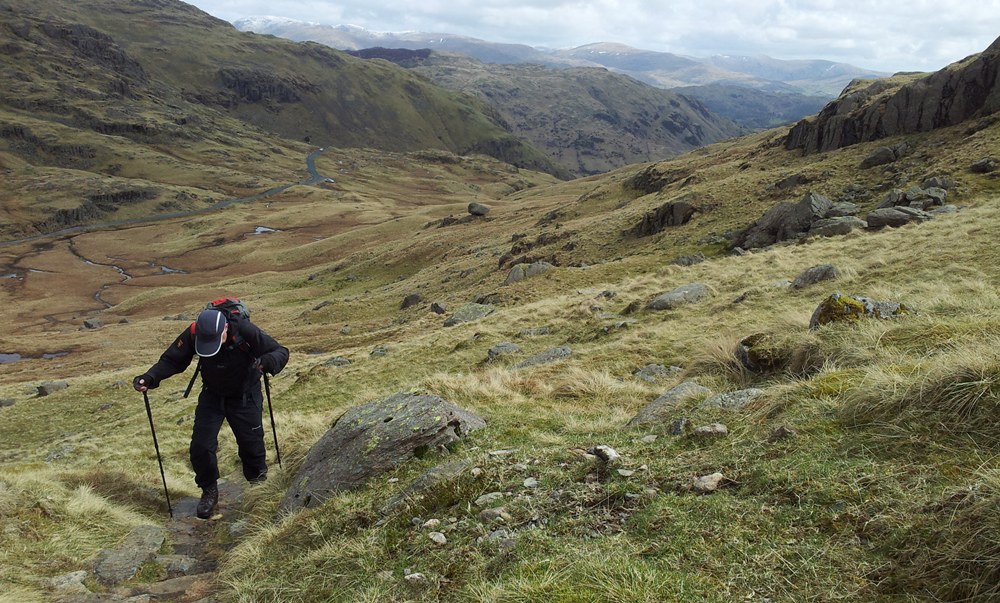 Around a Coniston Round – Great Carrs, Grey Friar, Dow Crag, Coniston Old Man, Brim Fell, Swirl How & Wetherlam – from below the Three Shire Stone
