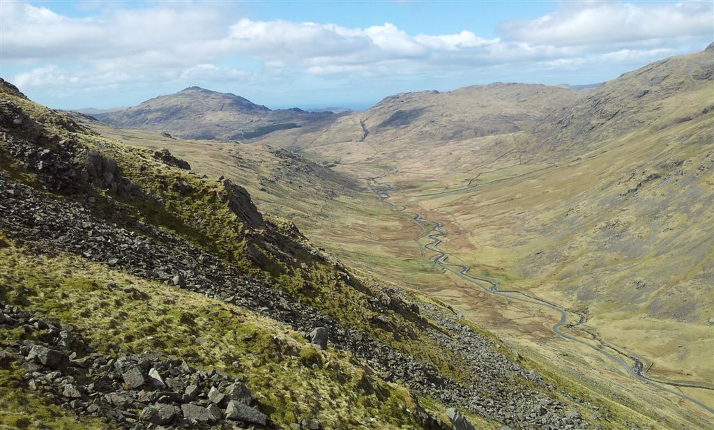 Around a Coniston Round – Great Carrs, Grey Friar, Dow Crag, Coniston Old Man, Brim Fell, Swirl How & Wetherlam – from below the Three Shire Stone