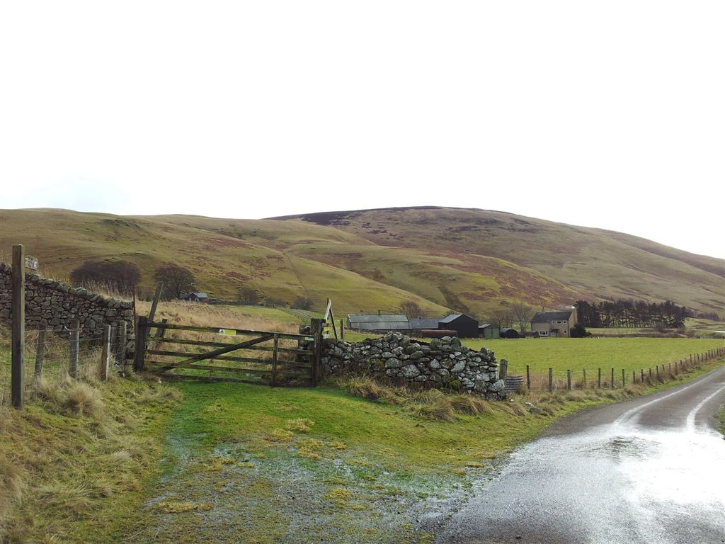 Leave the road through the gate. Shillhope up ahead