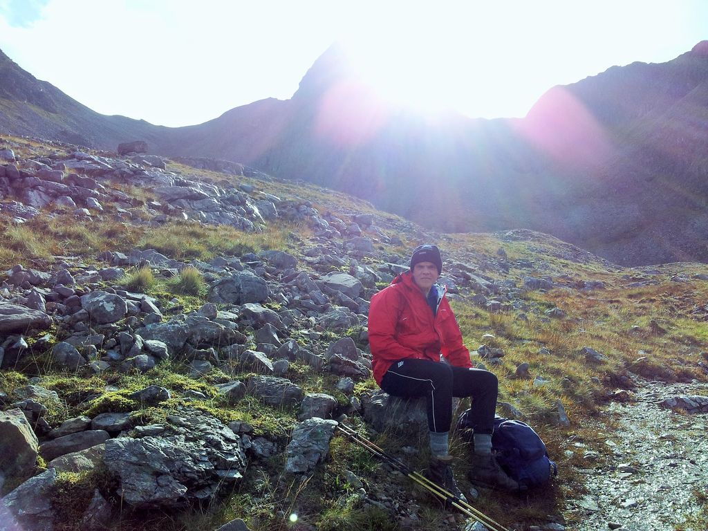 Many years of hillwalking yet first time we’d done this, obviously we’ve had it too easy:-) Bit cold, bit slippy and poles are essential. Had wasted a bit of time here faffing about here then drying feet. Still it meant we had got across and boots were still dry, and of course we won’t have to do that again. Oh hold on we’re coming back this way, bugger.