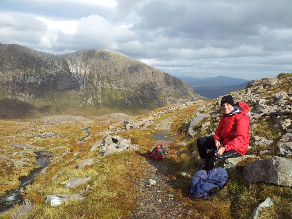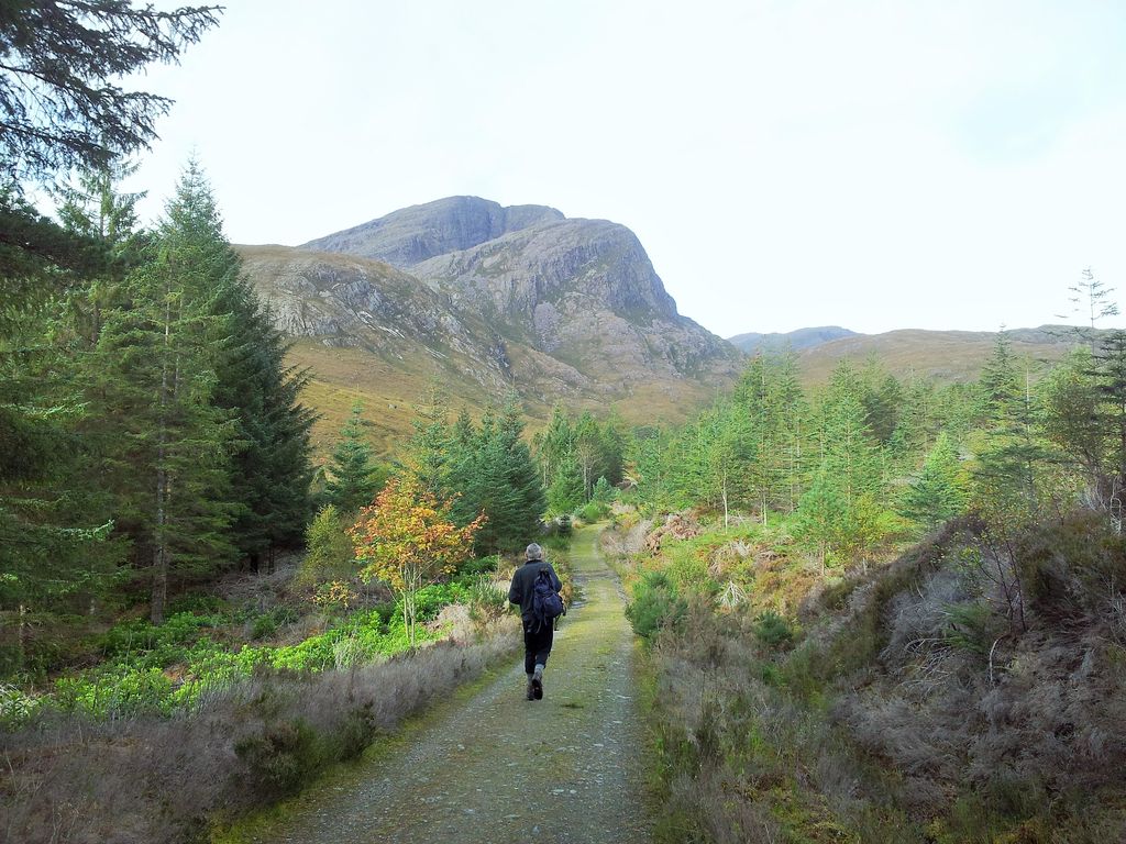 Day one of a week’s walking holiday in the wonderful north west highlands. After a long period of settled weather Autumn had finally arrived, and with it the gales. The Met Office suggested Skye would be cloudier and windier than the mainland, which at least narrowed our options a bit. We would head inland where the forecast was clear and dry but with 65 mph gusts on the high mountains. Despite this we were determined to get out somewhere after driving up to Plockton the previous evening, (we just weren’t sure where yet). One thing was sure, to be wary of narrow ridges and any hint of exposure as those gust could have me over – just like last year on Cul Beag.