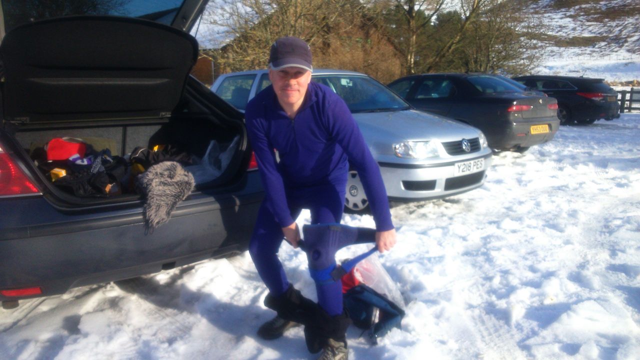 The stunning drive up the upper Coquet valley had rarely looked better as we pulled into a snow filled car park. First thing was to whip my ancient Yeti gaiters on, luckily no one was around to see this distressing sight!