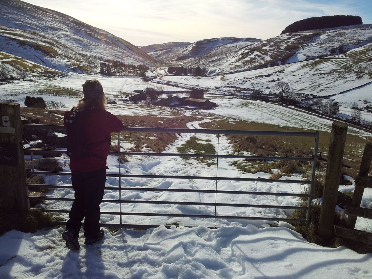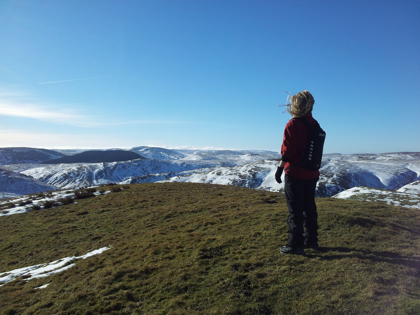 On the Border Ridge/Pennine Way balancing on a stile with a furry hat, as you do