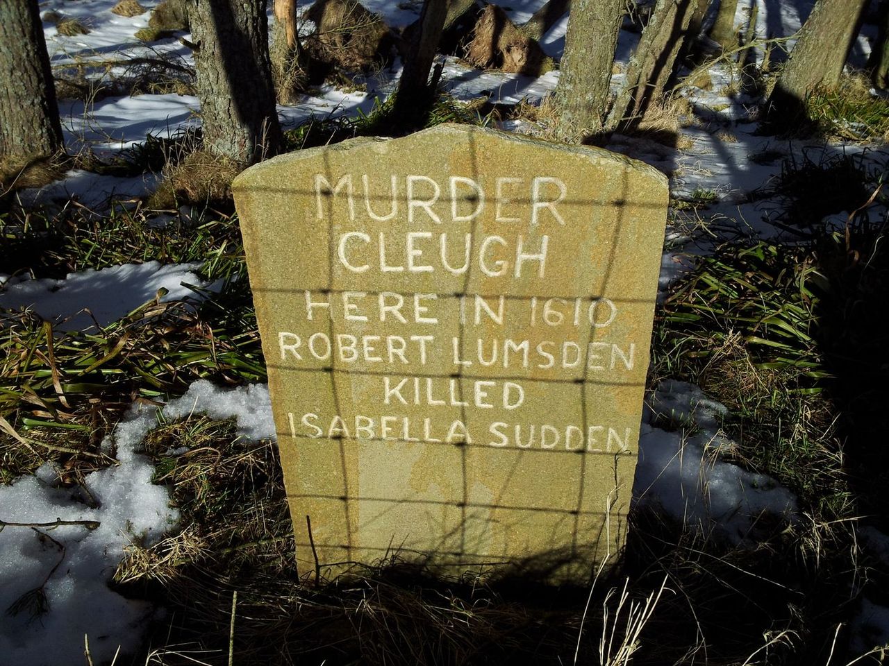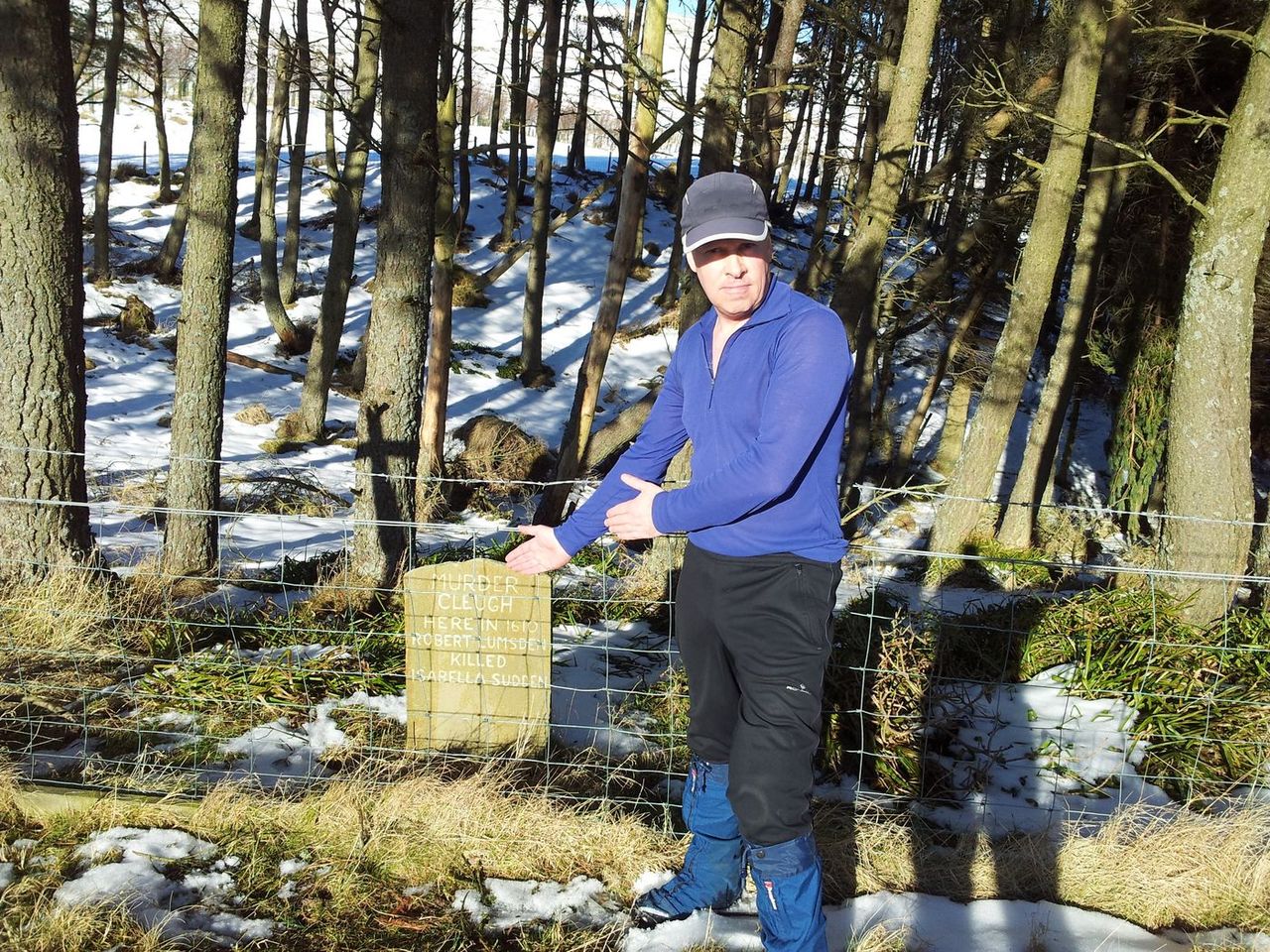 Soon the path starts to level out with views opening up along the Usway Burn valley across to the remote farmstead of Uswayford. We passed a few armed squaddies, (always slightly alarming), fortunately due to my Ron Hills and the cold weather it was obvious I had no concealed weapons. After a few minutes of gentle descent we passed a small wood, but this is no ordinary wood, it’s Murder Cleugh! A Cleugh is a valley/ravine, a murder is an unlawful killing, which you probably knew. And here marks the spot!