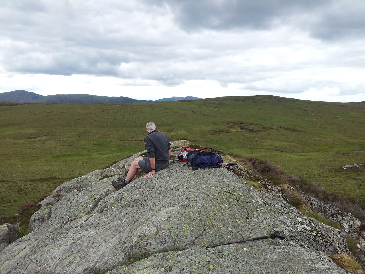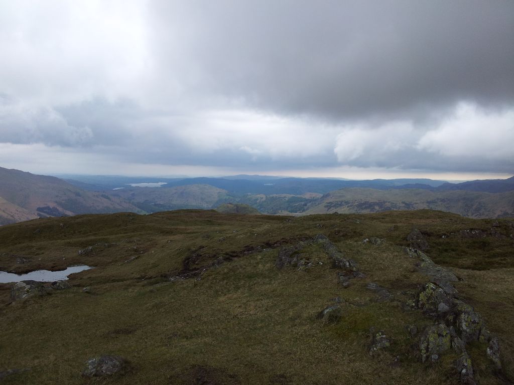 View north from near the trig, back over my route from distant Great Hill – 3.54pm