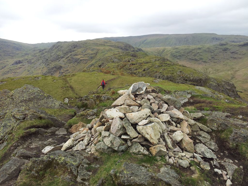 First time I’ve hopped over to this cairn from the path and then noticed the familiar star topped metal post was missing. You can just see it in the photo below. Doubt it’s got any significance but managed to wedge it back up at a slight angle before continuing down.
