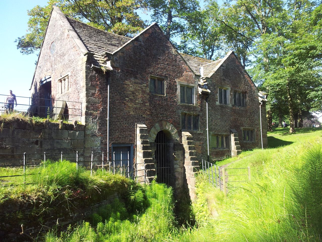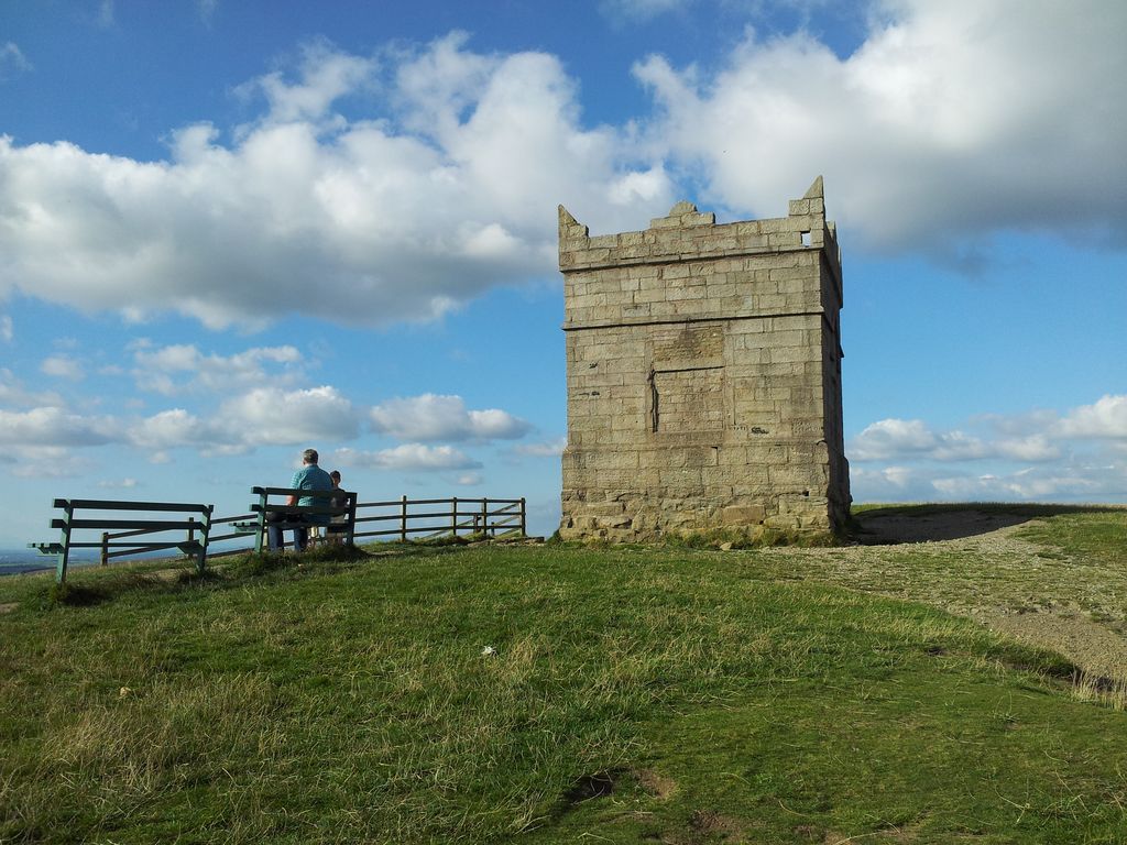 The landmark Pike Tower is a Grade II* listed building on the summit. The tower is square in plan with sides of 16 feet (4.9 m) in length and is 20 feet (6.1 m) high. It was built with a wooden roof, three windows and a door which are now blocked up. The roof was hidden by a parapet with pointed corner and intermediate steps. Inside it retains a fireplace and once had a chimney. Its single room is 13 feet (4.0 m) square with a stone flagged floor and was originally wood panelled. There is a cellar. It was built as hunting lodge in gritstone and was completed in 1733. John Andrews of Rivington Hall built the tower on the site of an old beacon using its stone for the foundations.