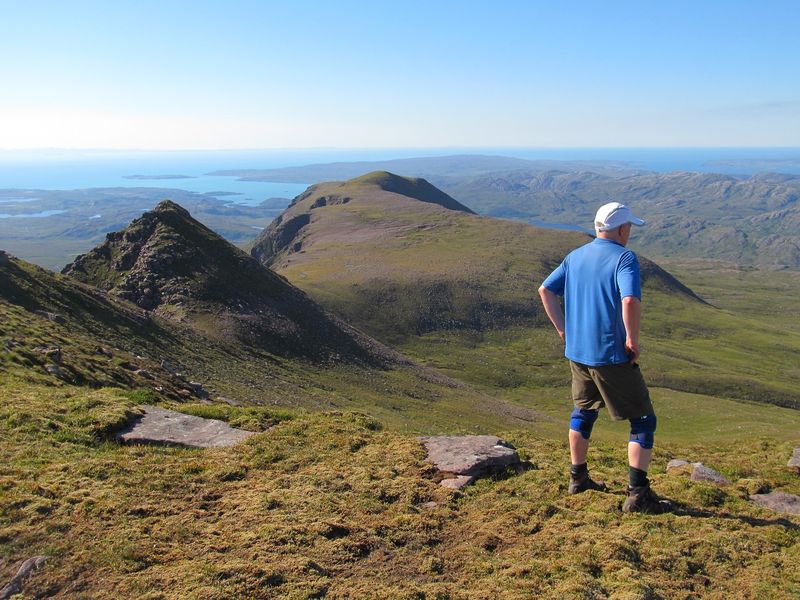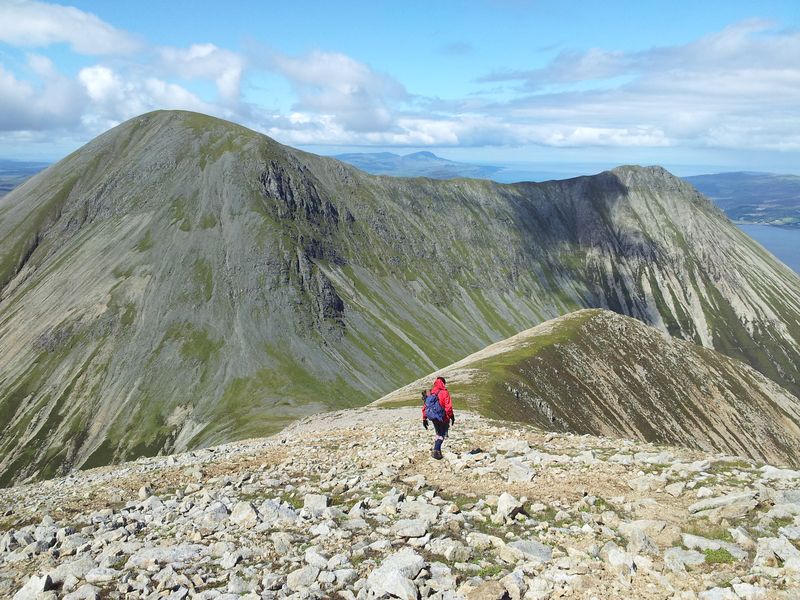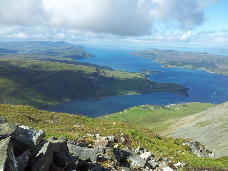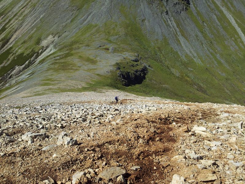 The final section along a steep diagonal crumbly path was a little slippery, it’s a direct but hardly uplifting route up and would need a little care going down. Views north however improved with every step. It was a good day to be in the hills.