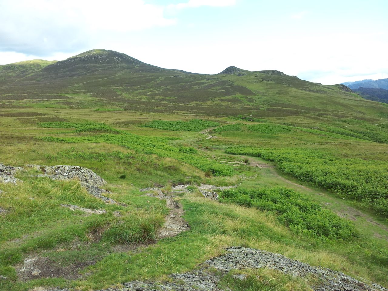 After a short climb the path levels then gently rises, Great Hill in the distance – 1.40pm