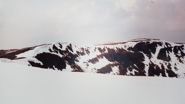 Memories fade of the 9.5 mile bike ride, seemed satisfyingly straightforward along the lochside turning southwest at Ben Alder Lodge with that classic view of Alder eventually opening up just like Butterfield’s photos. The two Leaches ridges looked fantastic even on this aged photo though I’d completely forgotten about the snow up there that day, we just remember it was really warm for May. Soon we were cycling straight for Alder passing the famous Culra Bothy, unfortunately on the other side of the river so didn’t get any decent photos. Bikes were jettisoned and hidden in long grass with handlebars poking out like deer antlers, despite the remote location our urban upbringing ensured it was impossible to suppress our fears of passing thieves!