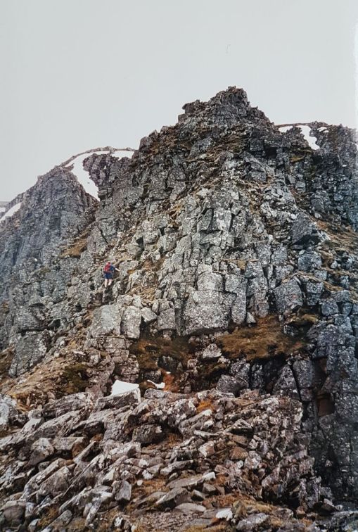 Alder looked great from here though Beinn Bheoil was the better top. Still no cover in rain, not that it was going to rain. That dark sky though did seem suspiciously worse which we manfully kept trying to ignore, hoping it would go away.